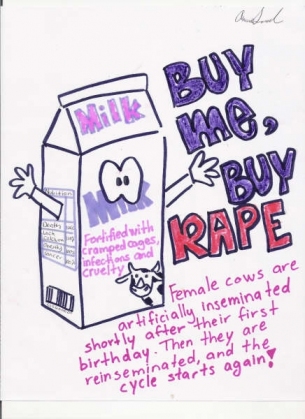 For a long time I didn’t connect my identities as a feminist and as a vegan. Now I do, or at least I’m beginning to, and this blog is a short attempt to trace some of these connections and to argue that consuming animals is a feminist issue. I’ve called myself a feminist for over 20 years but I only started to go vegan about five years ago, in that I started trying to avoid eating and generally using products derived from nonhuman animals. With all drugs in the UK currently tested on animals, 100% vegan purity is impossible but for me veganism is about actively living in ways that minimise my dependence on animals, a dependence which is always premised on exploitation and on actions that would be classified as murder, torture and slavery were they applied to humans.